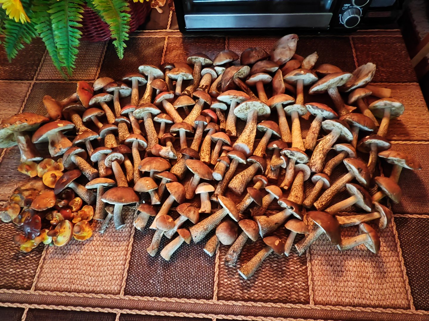 Кто-то рассказывал, что в некоторых регионах предпочитают собирать крупные грибы, они якобы созревшие, вкуснее мелких. У нас крупняк редко чистым остаётся. Даже во вчерашнем юринском лесу грибы чище и красивей, чем по нашей стороне в лиственном лесу. У нас просто до таких размеров не дорастают, а если дорастают, то уже некондиция - червяк, слизняк, плесень. Почвы другие, лес другой.