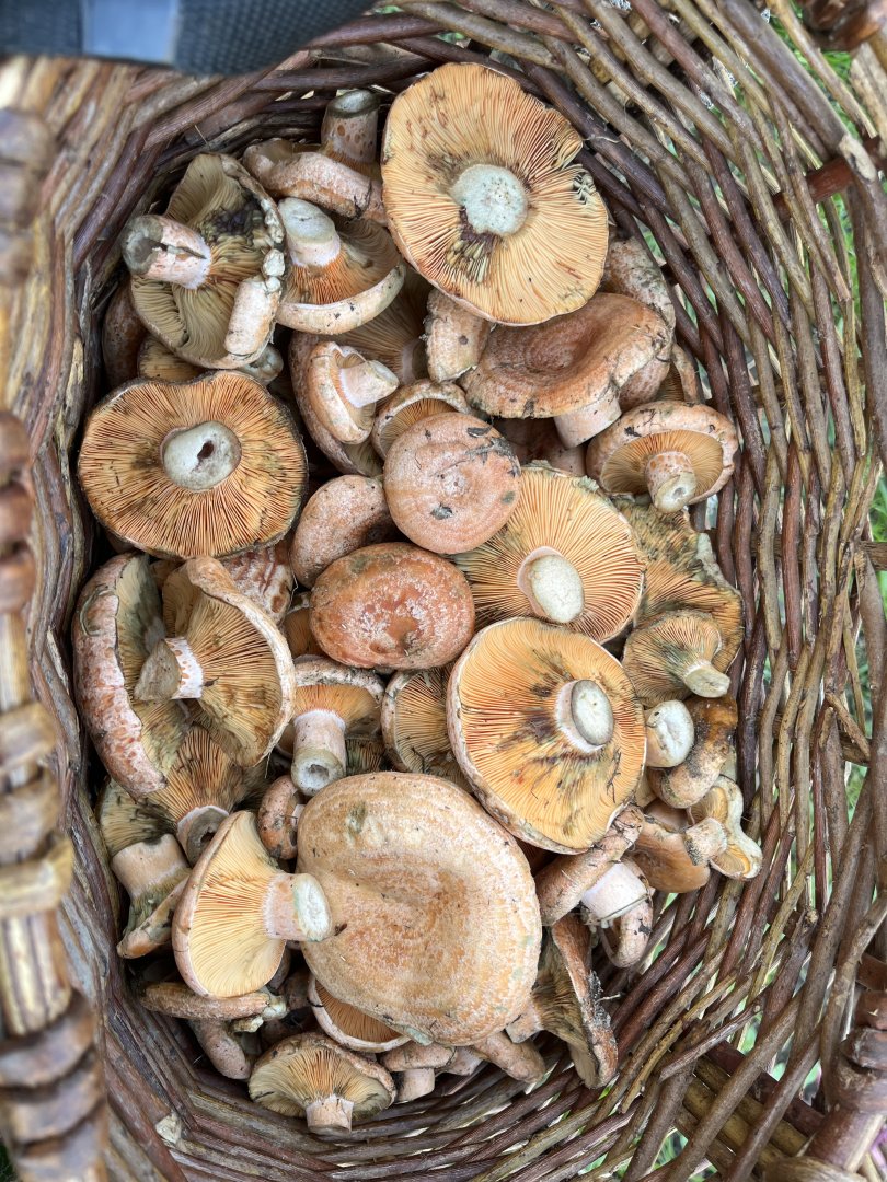 Рванули поближе к деревне и не торопясь нашмурыгали по полторы карзины рыжиков и сыроежек , ну и корзину белых .
