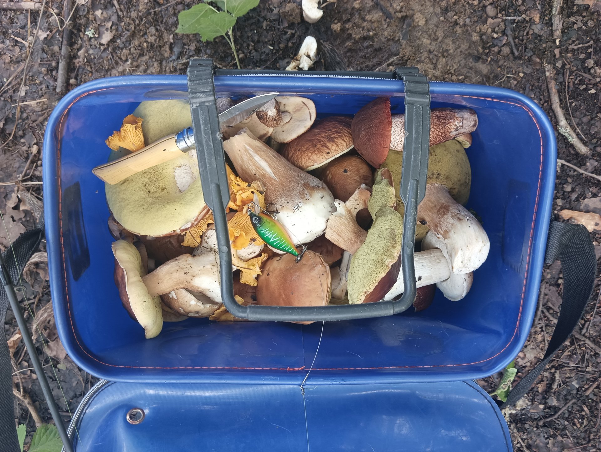 Воскресенье Павловский район. Грибы разные, набрали пару корзинок. Много сыроежек и волнушек, есть черные грузди, рыжики, белые. В понедельник Ветлужский район. На рыбалку пошел. По лесу не ходил, только по дороге и вдоль озера. С каждого заброса два-три белых. Подосиновики даже мелкие все червивые. Болотники, мои любимые грибы - наоборот, все чистые. Клевали на китайский ноунейм, до машины еле донес, больше 10 кг, волнушки не брал. В большом белом на фото ни одной дырки, больше полкилограмма грибного веса)