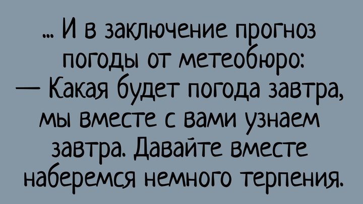 zloypapa 23 620 Жалоба Опубликовано 3 Октября Как хорошо, что суббота сегодня, а не завтра, как вчера. 1 1 Цитата Поделиться этим сообщением Ссылка на сообщение