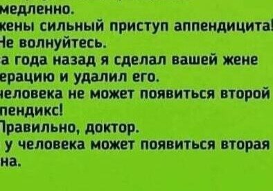 Же-Кю 98 586 Жалоба Опубликовано 4 Сентября Грузин устраивает сына на мясокомбинат и объясняет: - Вот, сынок, это аппарат, туда суёшь барана, оттуда 5 палок колбасы. 2 себе 3 в машину. Понял? - Нет. - Повторяю: вот аппарат, туда барана оттуда 5 палок. 2 себе 3 в машину. Понял? - Пап, а бывает такой аппарат - туда 5 палок, оттуда баран? - Да сынок! У твоей матери! 3 1 Цитата Поделиться этим сообщением Ссылка на сообщение