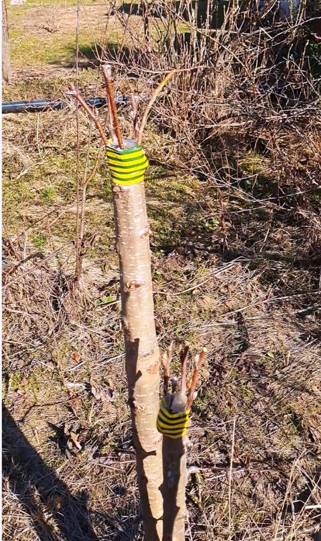 Когда первый раз прививал, в конце лета, решил, что изолента "душит" прививки и сокодвижение хуже, в общем убрал изоленту. Через несколько дней задел ветку, которая была уже см 50 высотой и прививка отвалилась...оказалось, что на первый год "пятно прироста" всего пару см и древесина не наросла....сейчас жду когда изолента сама отвалится, обычно это на второй год происходит....