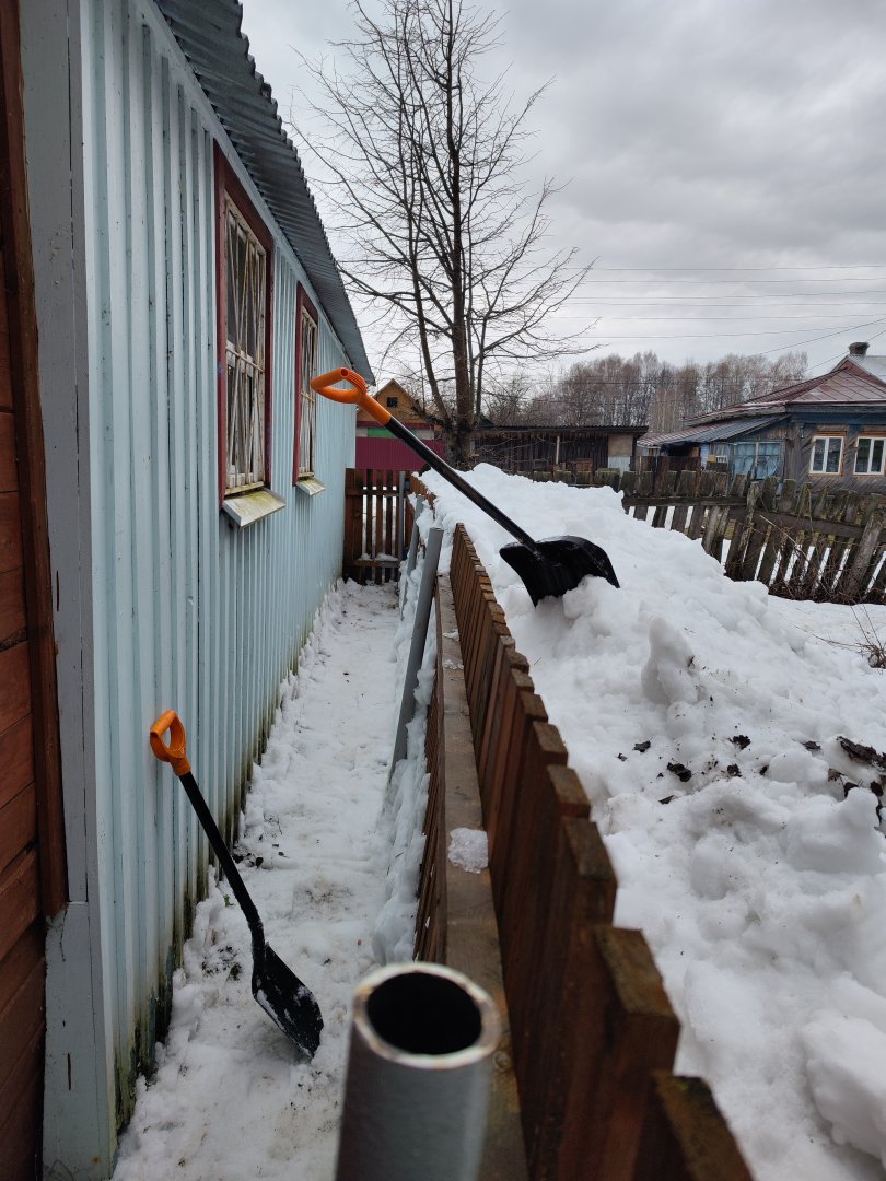 Сгонял в деревеньку с целью почистить снежок с теплиц.