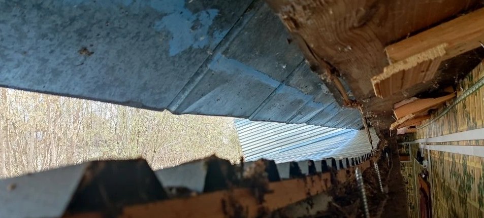 От полного обрушения крыши в сенях уже второй раз спас многострадальный старинный буфет и старинный медный тазик для варенья, стоявший сверху )) Как только тазик вытащили, потолок и крыша рухнули на буфет.