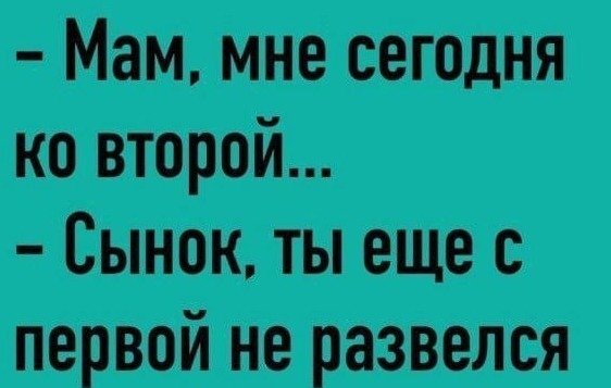 Нипал 19 596 Жалоба Опубликовано 18 Января (изменено) Сидят два чукчи, пилят бомбу. Проходит мимо мужик: – Эй, вы что делаете, она же взорвётся! – Хереня, однако, ничего стластного, у нас ессё одна есть! Киллер заходит в комнату, где мило беседуют два новых русских, и вежливо говорит: – Ничего, если я вас перебью? – Алло, Галя! А ты где хочешь побывать: на море или в лесу? – На море, конечно. А ты что, путёвки берёшь? – Да нет, освежитель воздуха для туалета. Купил мужик японку с правым рулём. Всё хорошо, только когда в окно плюёт – в жену попадает Изменено 18 Января пользователем Нипал 2 Цитата Поделиться этим сообщением Ссылка на сообщение